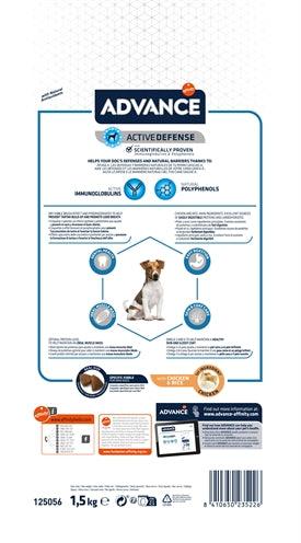 Advance Mini Adult hondenbrokken zijn speciaal ontwikkeld voor volwassen honden van kleine rassen tot 10 kg. Deze complete en licht verteerbare voeding bevat kip en rijst als hoofdingrediënten, wat bijdraagt aan een gezonde darmwerking. De toevoeging van omega-3- en -6-vetzuren uit visolie zorgt voor een glanzende vacht en een gezonde huid. De kleine brokjes zijn perfect afgestemd op de kaakgrootte van kleinere honden en helpen tandplak te verminderen. Met een optimaal eiwitgehalte draagt Advance Mini Adult bij aan het behoud van spiermassa, terwijl natuurlijke antioxidanten het voer vrij houden van kunstmatige toevoegingen.