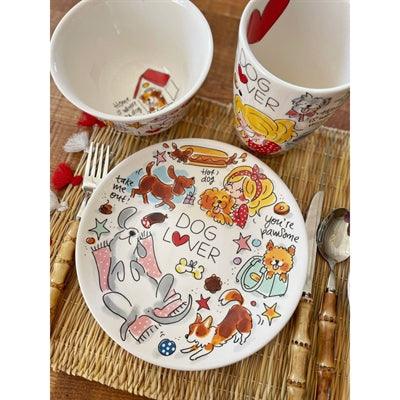 Het Blond Amsterdam Bord Dog Lover 22 cm is een bord van aardewerk van het bekende merk Blond Amsterdam, met vrolijke kleuren en afbeeldingen van verschillende honden. Fleur jouw servies op met dit leuke bord van Blond Amsterdam! Dit 'dog lover'- bord is onderdeel van de lijn artikelen met dierenafbeeldingen uit de Dog Lover en Cat Lover lijn. Het bord is gemaakt van aardewerk en uitgevoerd met vrolijke kleuren en figuurtjes die jouw maaltijd gelijk opvrolijken!