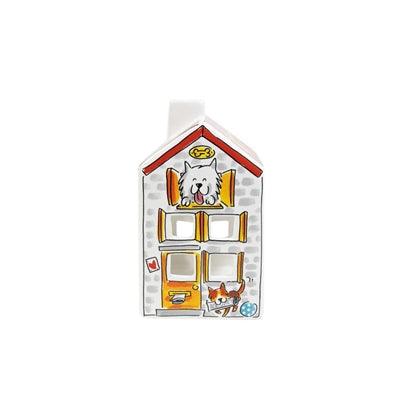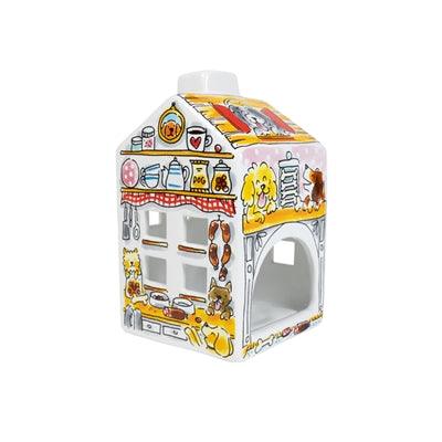 Het Blond Amsterdam Lichthuisje Hond 8X8X14 cm is een schattig felgekleurd theelichthuisje met rondom hondenprint dat met een waxinelichtje zorgt voor een sfeervol licht. Het huisje is gemaakt van aardewerk en is 14 centimeter hoog. Door de raampjes wordt de kamer sfeervol verlicht. De schoorsteen, hondenprint in Blond Amsterdam-stijl en teksten als "Home is where my dog is", maken dit lichthuisje de perfecte toevoeging in het huis van elke hondenliefhebber!