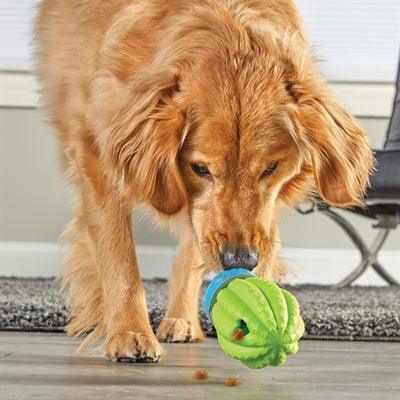 De Brightkins Cactus Surprise Treat Dispenser is een intelligentiespeeltje van 12,5 x 12,5 x 24,1 cm dat de behendigheid en het denkvermogen van je hond stimuleert. Door de instabiele onderkant wiebelt de cactus alle kanten op, waardoor je hond actief moet spelen om de beloningen eruit te krijgen. De kleine opening aan de bovenkant zorgt ervoor dat brokjes en snoepjes geleidelijk vrijkomen, waardoor het speeltje ook als slowfeeder gebruikt kan worden.