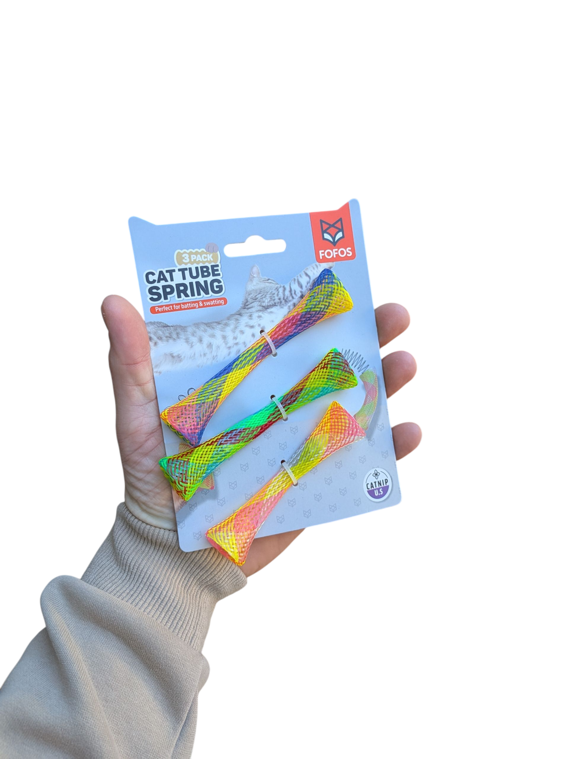 De Fofos Spring Tube 10X1,5X1,5 cm 3st is leuk kattenspeelgoed van nylon met kattenkruid. Dit originele kattenspeelgoed zijn buisjes gemaakt van nylon die weg kunnen springen om jouw kat uit te dagen. Druk de Spring Tubes tegen de grond of jouw handpalm en het speeltje zal wegspringen en jouw kat uitdagen om er achteraan te gaan. De speeltjes zijn gemaakt van nylon in verschillende, vrolijke kleuren. In het buisje zit een zakje met catnip.