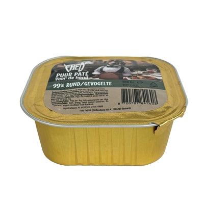 Het Freds Kuipje Hond Puur Rund/Gevogelte is een smakelijke en complete hondenpaté, ideaal voor een gezonde en natuurlijke maaltijd. Met 99% vlees, waarvan 34% rund en 65% gevogelte, biedt deze paté jouw hond een pure voedingsbron vol essentiële voedingsstoffen. Dankzij de graanvrije en kunstmatige toevoegingsvrije samenstelling is dit voer perfect voor honden met een gevoelige spijsvertering of voedselintoleranties.