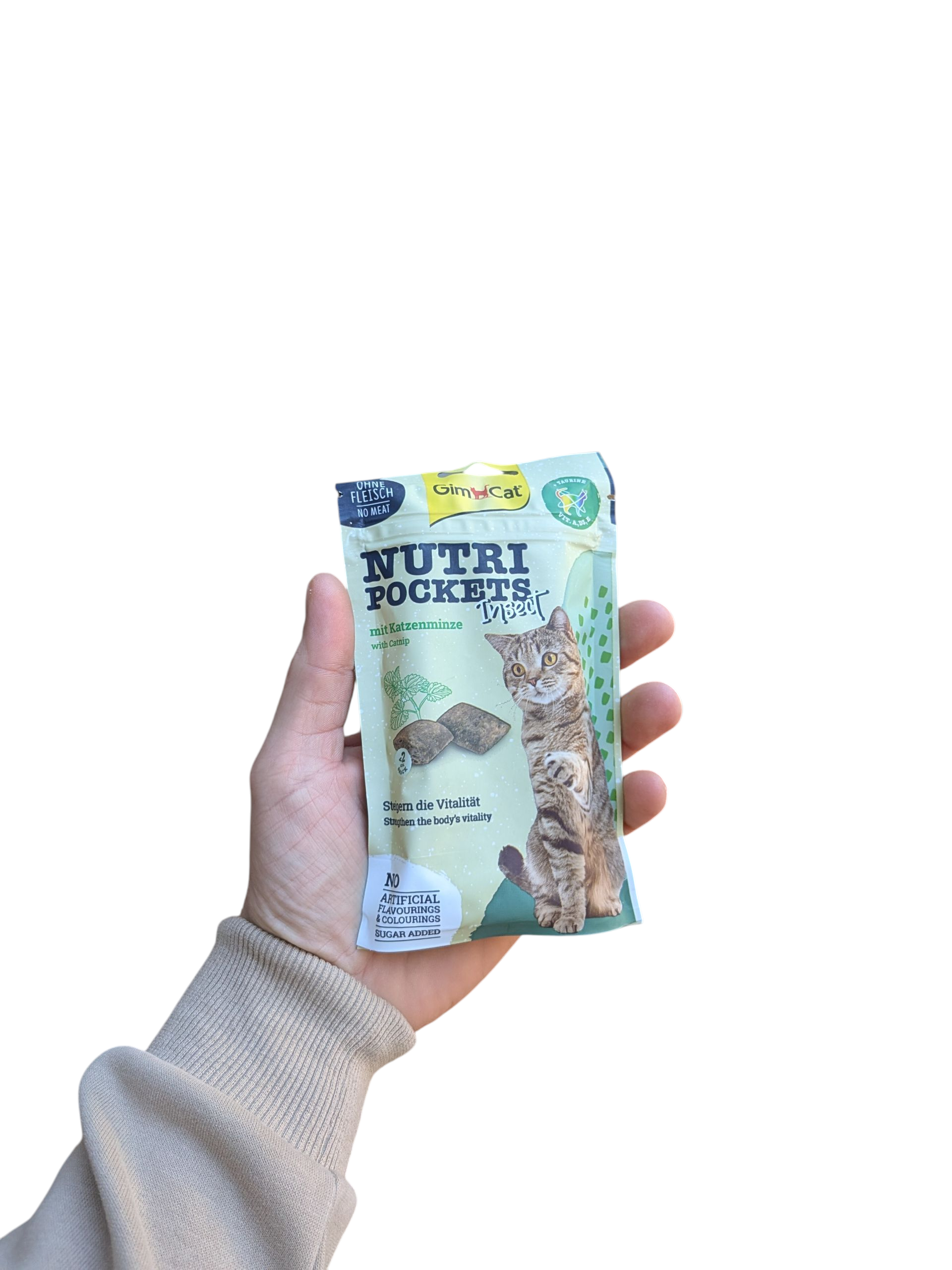 Gimcat Nutri Pockets Insect en Kattenkruid is een smakelijke en gezonde traktatie voor jouw kat. Deze knapperige kussentjes zijn gevuld met een fijne creme die insecteneiwit en catnip bevat.