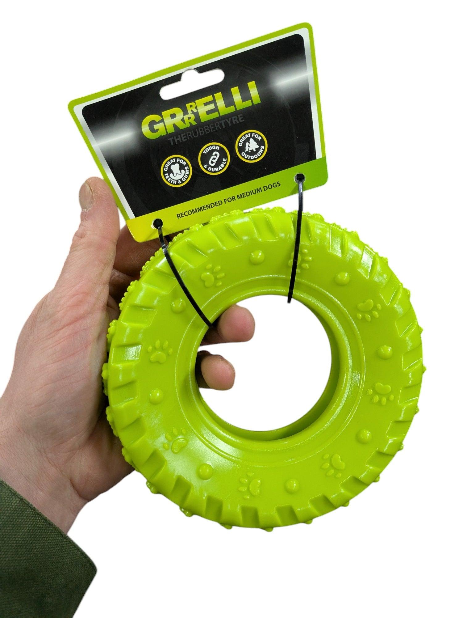 De Grrrelli Tyre Groen is ideaal voor honden die graag kauwen en spelen met interactief speelgoed. Dankzij de stevige constructie en grip is het ook geschikt voor apporteerspelletjes.