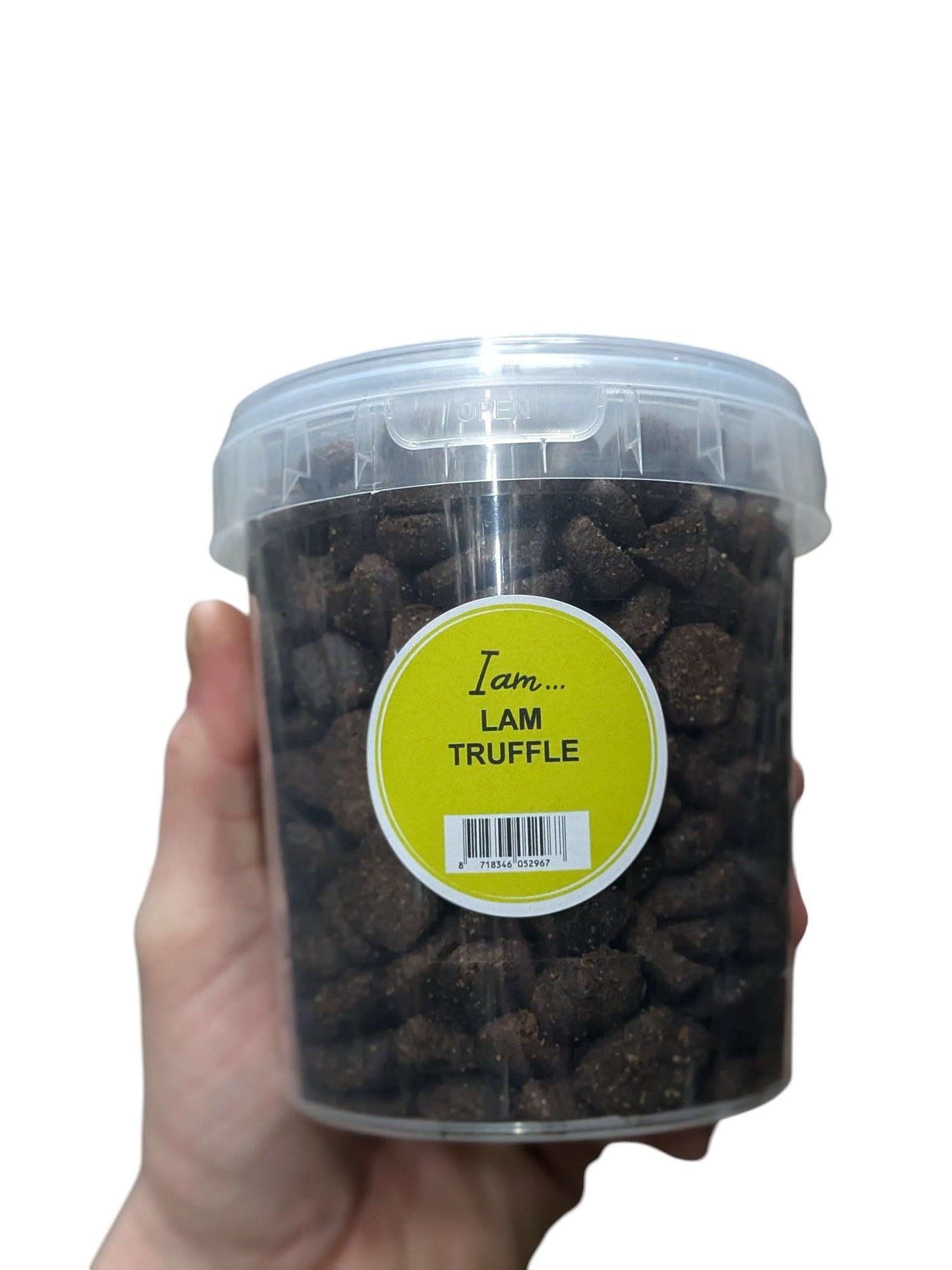 De I Am Lam Truffle 500 gr is een semi-moist hondensnack met lam en zalm uit 88% dierlijke ingrediënten, met vers lam en vrij van gluten. Een heerlijke, voedzame snack voor de hond die dicht bij de natuur blijft! De compacte I Am Lam truffels bestaan uit maar liefst 88% dierlijke ingrediënten, waarvan 50% vers lam. Het recept is aangevuld met onder andere heerlijke, natuurlijke ingrediënten zoals erwten, bietenpulp, gedroogde appel, yucca en diverse kruiden voor smakelijke, gezonde snack.