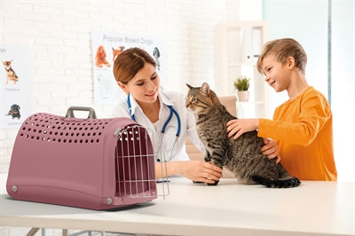 Imac Reismand Linus Roze 50 x 32 x 34,5 cm is een moderne transportbox voor de hond of kat van sterk plastic, met veel ventilatie en ijzeren traliedeur.