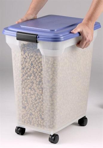 Deze mooie transparante voedselcontainer is voorzien van wielen, zodat deze makkelijk verplaatsbaar en op te bergen is. De voeding blijft in deze container langer vers en krokant, omdat hij luchtdicht afgesloten wordt.