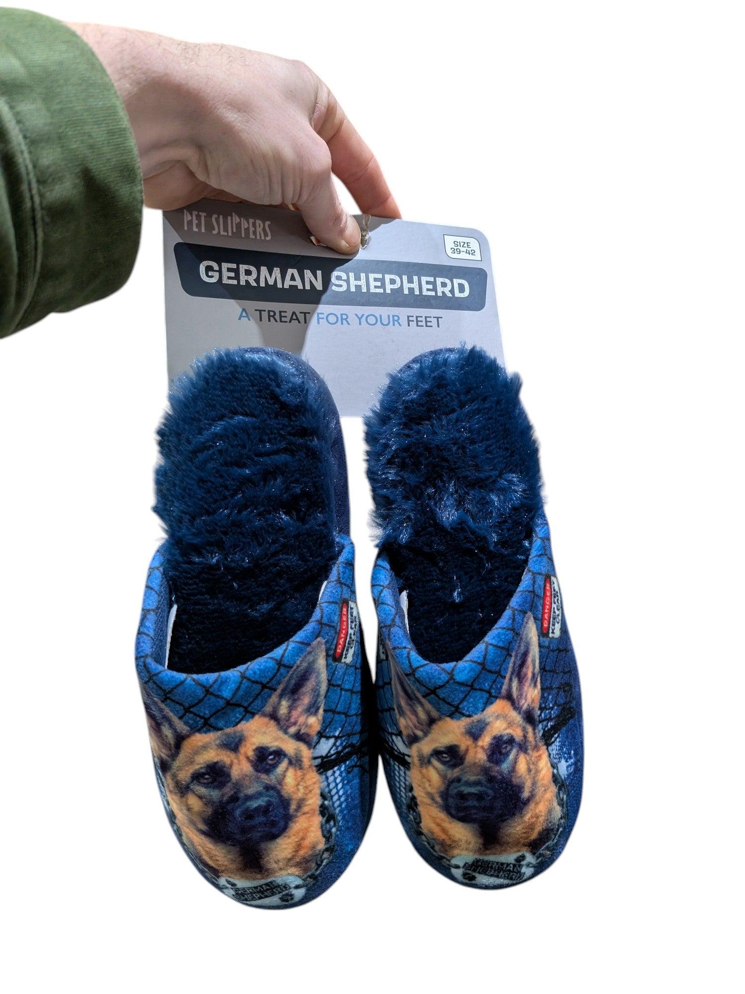 De Pantoffel German Shepherd Donkerblauw 39-42 zijn pantoffels met dierenprint en bieden ultiem warmte en comfort, perfect voor gezellige momenten thuis. Gemaakt van zacht materiaal en uitgerust met een dikke zool, zorgen ze voor een heerlijke, warme ervaring en een luxe gevoel bij elke stap. De charmante dierenprint voegt een speelse touch toe aan je ontspanningsmomenten.