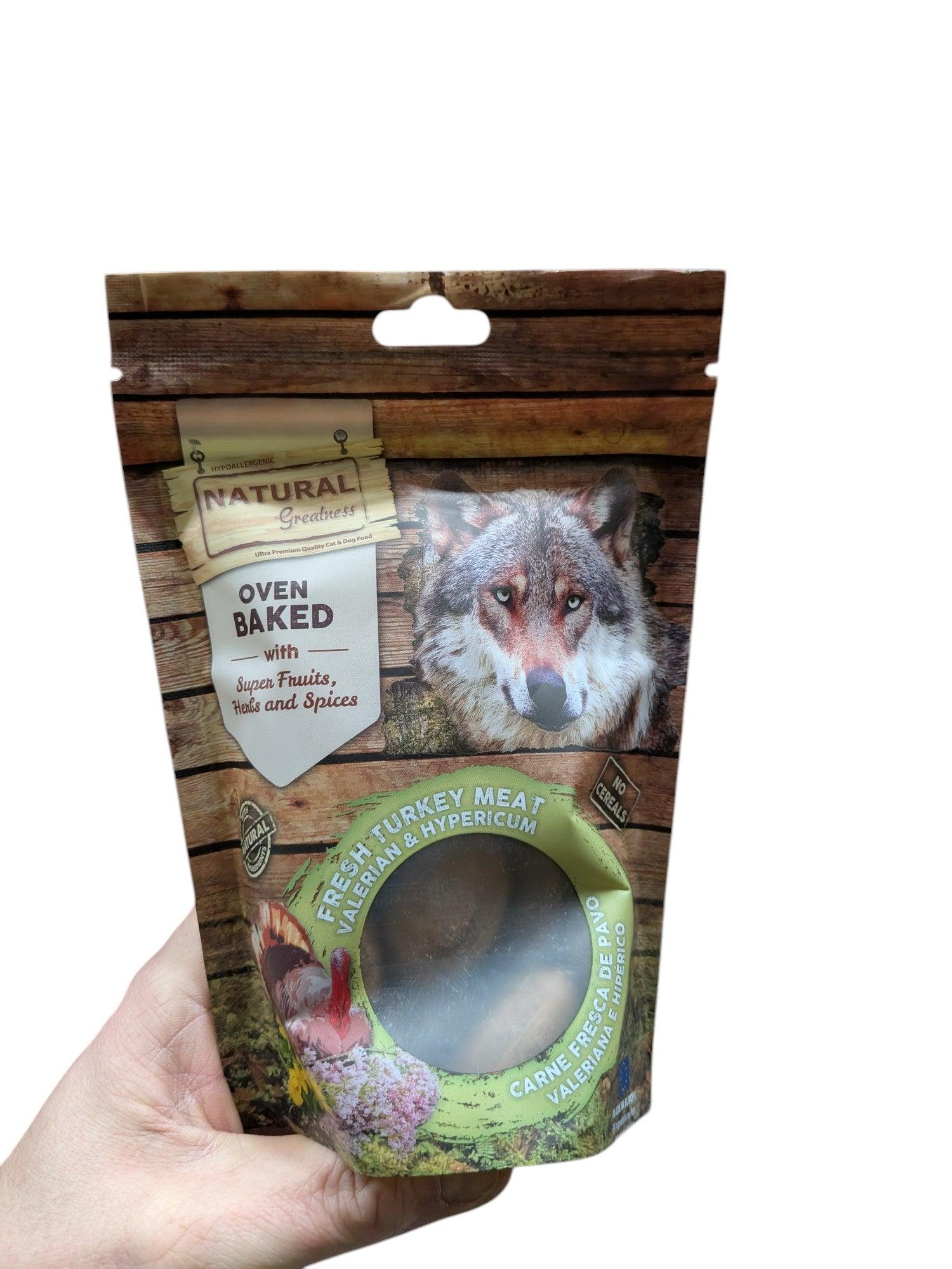 Natural Greatness Semi-Moist Bits Joint Support zijn natuurlijke, hypoallergene en graanvrije halfvochtige bits geschikt om als prijs of beloning te geven aan volwassen honden. Naast hoogwaardig kalkoenvlees als hoofdingrediënt bevat deze snack glucosamine, chondroïtine en MSM, stoffen die zeer gunstig zijn voor de gewrichten van de hond.