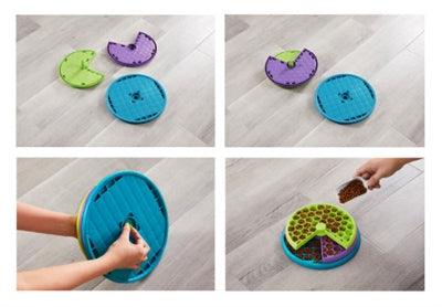 De Nina Ottoson Lickin'Layers Likmat is een uitdagend intelligentiespel dat jouw hond zowel mentaal als fysiek stimuleert. Dit interactieve spel bestaat uit drie draaibare schijven waarin je droogvoer, natvoer of snacks kunt verstoppen. Je hond moet de schijven verplaatsen met zijn snuit of poten om bij de beloningen te komen. Hierdoor wordt hij gestimuleerd om na te denken en actief bezig te zijn, wat helpt tegen verveling en stress.