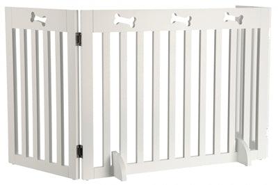 Dit Trixie Dog Barrier hondenhek in wit van 124x61 cm sluit ruimten of de trap af voor je hond.