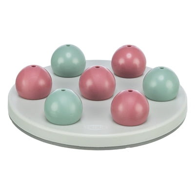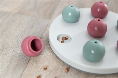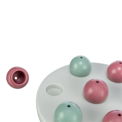 Bord met 7 balvormen. Uw kat moet de vormen verplaatsen om bij de snoepjes te komen. Voor fysieke en mentale stimulering. Met anti-slip bodem.