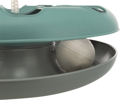 Tussen de twee schijven van dit kattenspeeltje rolt een balletje. Jouw kat zal zijn uiterste best doen om dit balletje te pakken te krijgen. Door de open zijkanten en de openingen op de schijf kan hij proberen op meerdere manieren de bal te pakken te krijgen. De eindeloze mogelijkheden om de bal te pakken zorgen ervoor dat jouw kat fanatiek zal spelen met deze schijf.