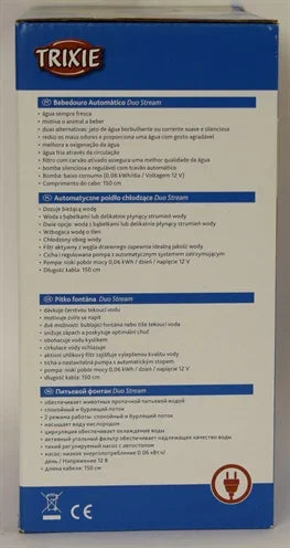 De Trixie Drinkfontein Duo Stream zorgt voor een constante aanvoer van vers en zuurstofrijk water voor jouw hond of kat. Dankzij de twee instellingen kies je zelf tussen een bruisende waterstroom of een zachte straal, afhankelijk van wat je dier prettig vindt. De watercirculatie draagt bij aan natuurlijke koeling en stimuleert huisdieren om meer te drinken. Het actieve koolfilter verbetert de waterkwaliteit door smaakjes en onzuiverheden te verminderen. De pomp is voorzien van een auto-stopfunctie voor extra gebruiksgemak. De drinkfontein is gemaakt van kunststof en werkt energiezuinig. Reservefilters zijn los verkrijgbaar.