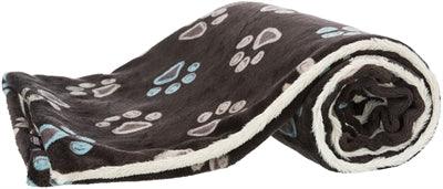 Deze heerlijk zachte hondendeken biedt optimaal comfort voor jouw hond, zowel thuis als onderweg. De deken is gemaakt van twee soorten pluche: een zijde met kort pluche in een donkerbruine kleur met een speelse pootafdrukjes-print en een andere zijde van langharig, crèmekleurig pluche voor extra zachtheid. Dit maakt de deken ideaal om in te nestelen, mee te knuffelen of als extra laag in een hondenmand of op de bank.