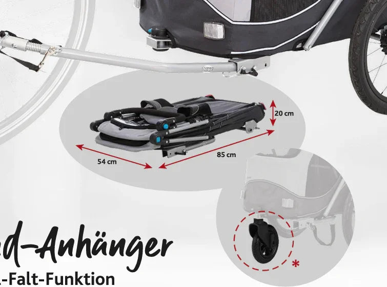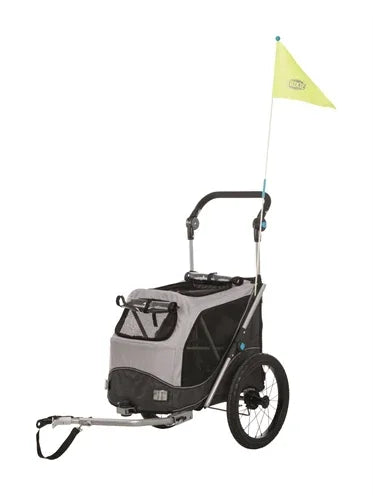 • Jogger-voorwiel – Dit losse voorwiel maakt van de fietskar een stabiele buggy, perfect voor diverse terreinen.