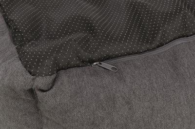 De bekleding is volledig afneembaar, wat het schoonmaken eenvoudig maakt. Dit zorgt ervoor dat de mand langer fris en hygiënisch blijft, zodat jouw hond altijd kan genieten van een comfortabele slaapplek. De neutrale grijze kleur past perfect in verschillende interieurstijlen en maakt deze hondenmand een mooie toevoeging aan je huis.