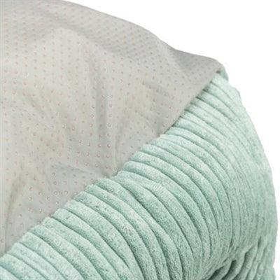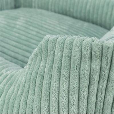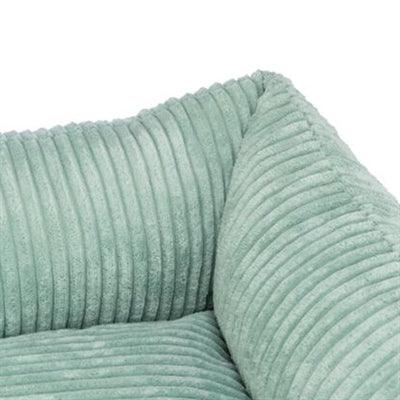 De zachte ribfluwelen bekleding en het vast geïntegreerde kussen zorgen voor extra knusheid, terwijl de slipvaste onderkant voorkomt dat de mand verschuift op gladde vloeren. De afneembare hoes maakt het reinigen eenvoudig en praktisch.