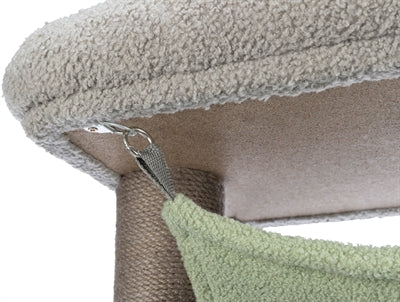 De Trixie Kitten Krabpaal Lunito Grijs/Mintgroen 71 cm is een krabpaal voor kittens in schapenvacht look met schuilplaats, hangmat en twee ligplekken. Krabben is voor katten een natuurlijke bezigheid: zo houden zij hun nagels bij en markeren zij hun territorium. Om te voorkomen dat jouw kitten zijn nagels leert slijpen aan het meubilair, is het aan te raden veel krabmogelijkheden in huis te hebben. Daarvoor is deze handige krabpaal uitermate geschikt! De paal bestaat uit een schuilplaats, twee ligplateaus, een hangmat en twee palen met sisal om de nagels aan te scherpen. De hangmat is verwijderbaar en kan op de hand gewassen kan worden.