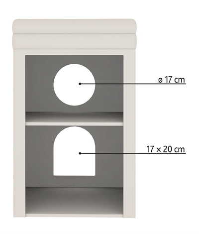 De toegangsgaten van deze krabpaal hebben een doorsnede van 17 centimeter.