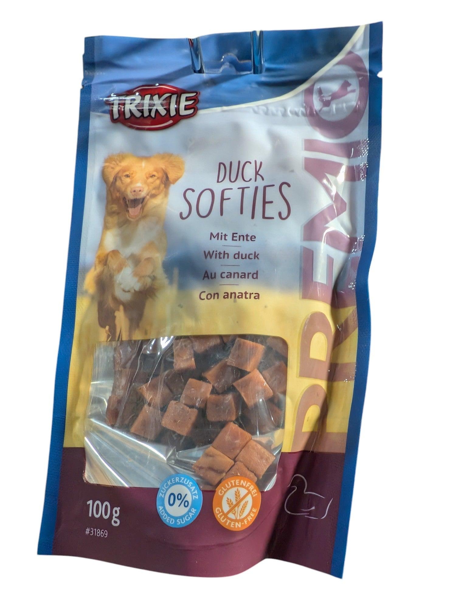 De Trixie Premio Duck Softies van 100 gram zijn aanvullend diervoer voor de hond. Het zijn heerlijke beloningsscnacks gemaakt met eend en rijk aan proteïnen. Deze heerlijke snacks bevatten maar liefst 65% vlees! De ideale, gezonde snack voor jouw hond van compact formaat, die de softies ideaal maakt als beloning bij het trainen. Deze lekkere snacks zijn gemaakt zonder toegevoegde suikers en gluten.