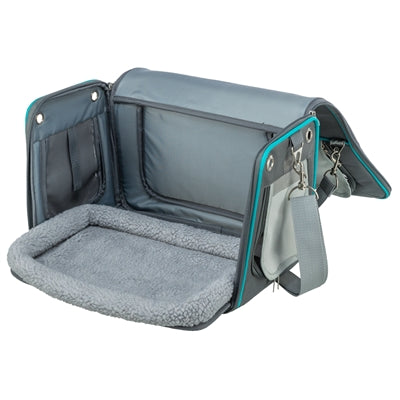 De Trixie Reistas Vicky Knaagdier Met Uitneembaar Binnenkussen Grijs 40X27X28 cm is een transporttas voor knaagdieren en konijnen. Geef jouw knaagdier comfort en veiligheid onderweg met deze reistas, ontworpen om een thuisgevoel te bieden waar ze zich kunnen terugtrekken. Deze tas is voorzien van een uitneembaar binnenkussen, handig bij bijvoorbeeld bezoeken aan de dierenarts. Afdekbare gaas-inzetstukjes en ventilatiegaten zorgen voor optimale luchtcirculatie. Het stevige EVA/polyester materiaal behoudt de vorm. De tas opent volledig aan de zijkant en voorkant voor gemakkelijke toegang. Compleet met een afneembaar handvat en schouderriem voor draagcomfort. Een handig buitenvak biedt extra opbergruimte. Deze reistas biedt de perfecte combinatie van functionaliteit en comfort voor onderweg.
