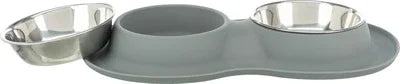 Trixie Voerbak / Waterbak Dubbel Siliconen / Rvs Grijs