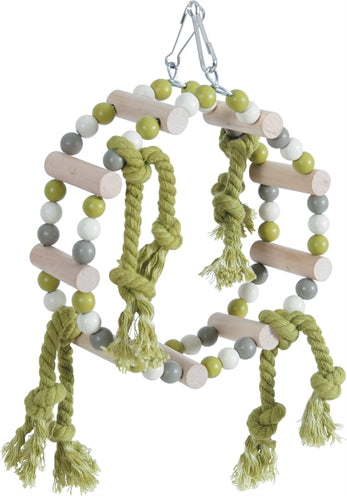 Vogels hebben behoefte aan beweging én mentale uitdaging om gezond en tevreden te blijven. Deze houten wielschommel brengt extra dynamiek in de kooi, doordat jouw vogel continu kan balanceren en meebewegen met de schommel. De kralen nodigen uit tot spel en lichte knaagactiviteiten, wat helpt bij het tegengaan van verveling en negatief gedrag. Zo blijft jouw vogel actief, ontspannen en goed gestimuleerd.